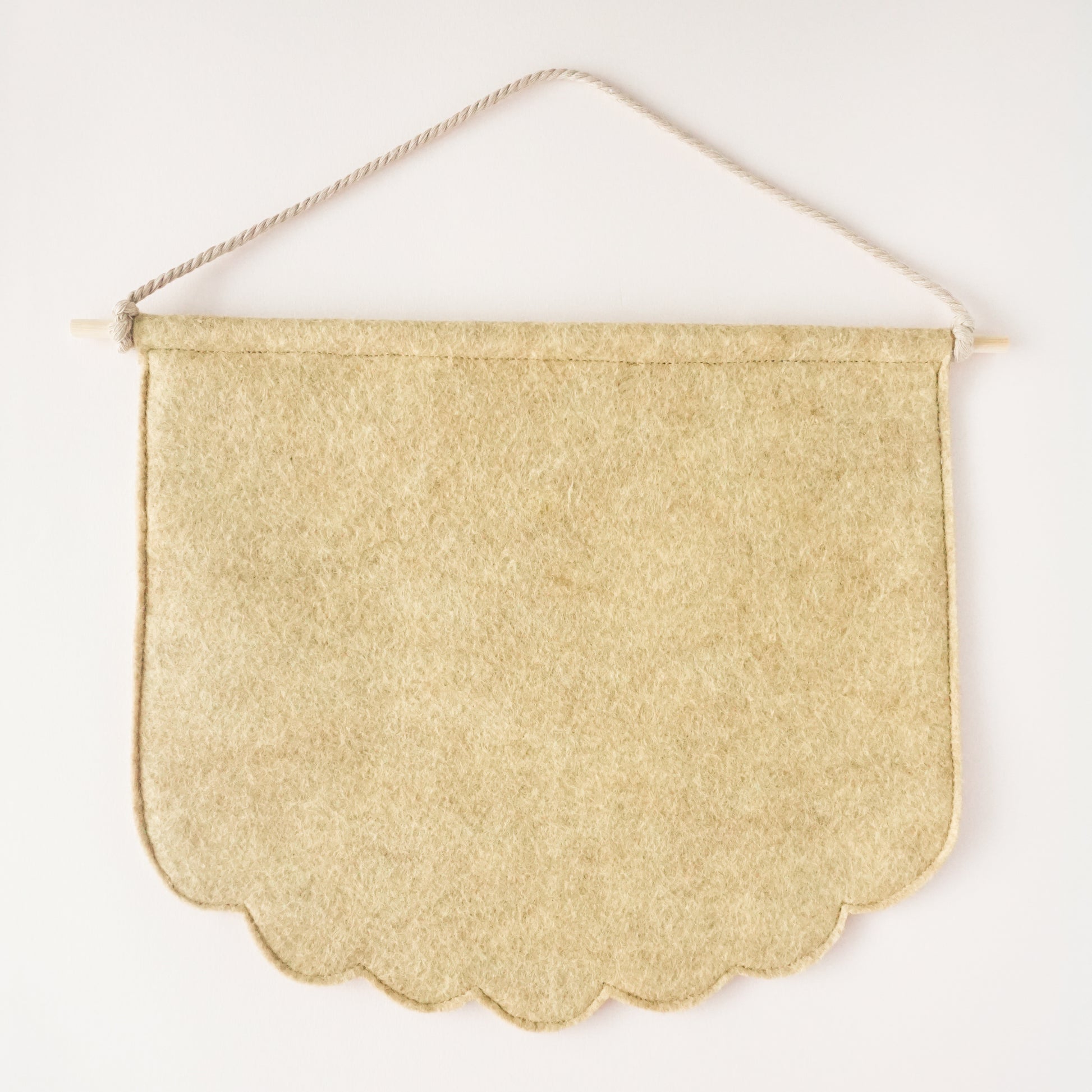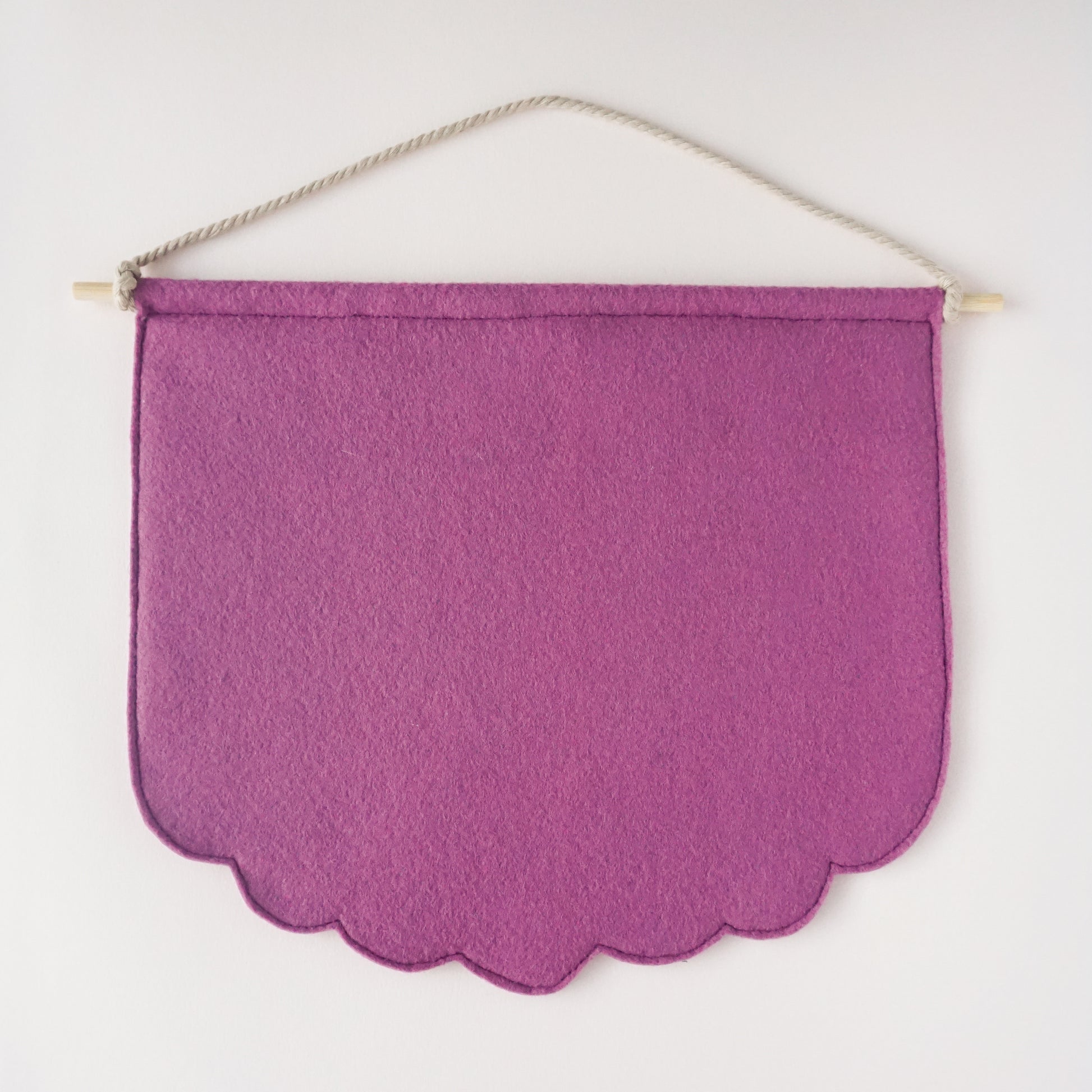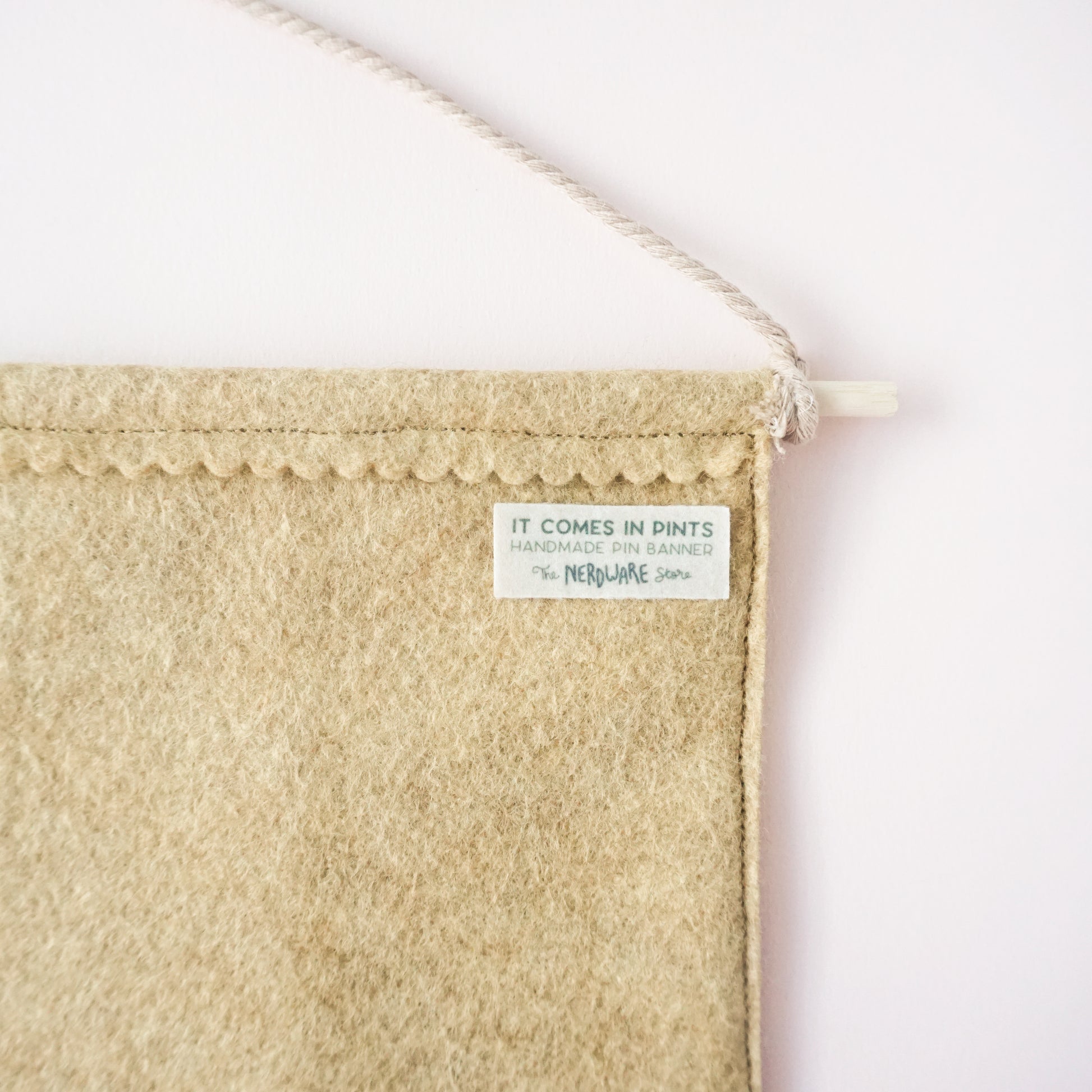These pin banner displays are made with wool felt and are perfect for showcasing beloved pins and buttons in your living space. Pro-tip: you can arrange multiple sizes and colors of pin banners together in a gallery wall! These pin banners are about 10" wide and 9" at their longest point.