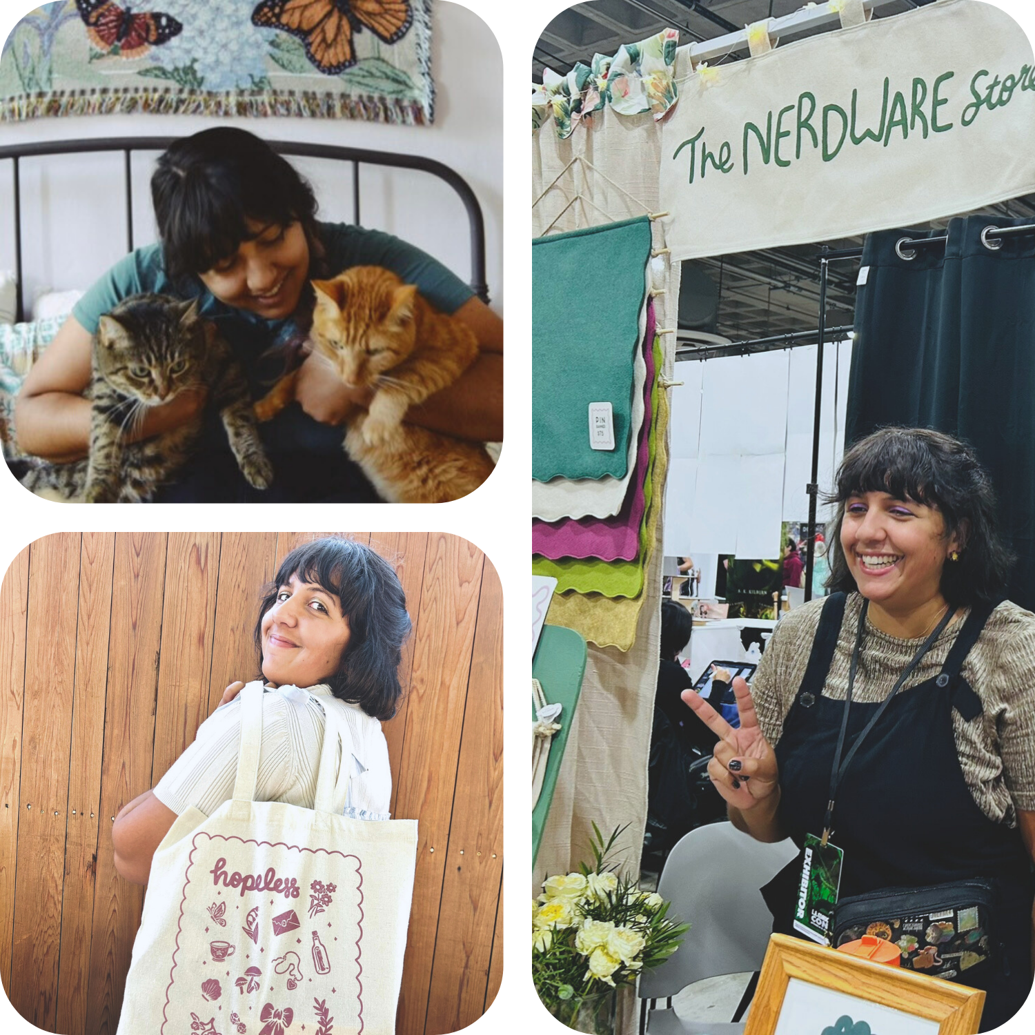 My name is Lilian, and I’m the artist and owner of The Nerdware Store. I live in Baltimore with my cats, my plants, and my pin collection.